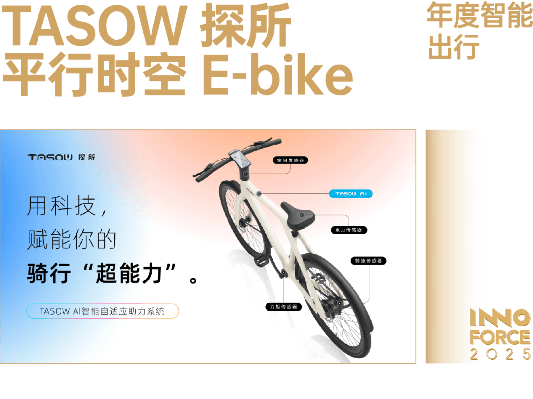 跟着国内消费者对户外活动、健康糊口体例的逃求逐步升级,电帮力自行车(E-bike)起头从自行车发烧友、中老年骑行快乐喜爱者形成的消费群体,扩展到以年轻、活动群体中,公共消费市场。探所电动旗下的首款 E-bike 产物「平行时空」,但愿凭仗长续航、轻量化、智能化等特点,获取更多年轻用户的青睐。和保守自行车比拟,E-bike 产物正在骑行过程中能够启动电机供给辅帮动力,更好骑;比起纯靠外力驱动的电动自行车,E-bike 必需通过人力踩踏才能启动帮力,能够正在提效的同时兼具活动的结果。为了达到和自行车附近的骑行体验,探所「平行时空」将电池、电机等焦点部件进行了一体化集成,同时利用了碳纤维材料,使得整车轻量化获得了无效节制,最长续航可达 100km。同时,TASOW AI 智能自顺应帮力系统,能够连系内置 4 大传感器,及时按照踏频、踩踏力度和坡度等,从动调整电机输出功率,实现「无力辅帮」。能够说,探所 E-bike 为更多通俗骑行快乐喜爱者拆上了一副「双轮外骨骼」。不只能够让双腿「更有劲」,也能够进一步扩大骑行半径。通过敌手艺的整合,以及对消费市场的洞察,探所找到了一个让 E-bike 从少数人群公共市场的产物方式。