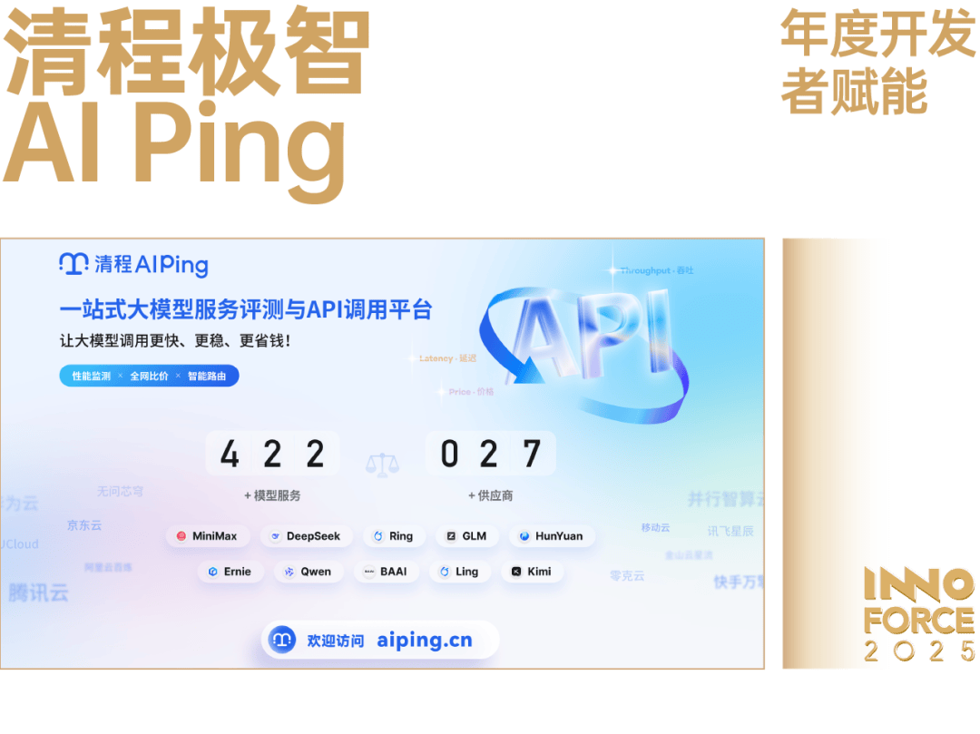 正在大模子 API 办事进入迸发期、市场呈现高度碎片化的布景下,开辟者面对着模子选型、集成取成本优化的诸多挑和。清程极智 AI Ping 精准地捕获到这一核肉痛点,AI Ping 是清程极智旗下的大模子办事评测取一坐式挪用平台。2025 年,清程极智 AI Ping 已笼盖数十家大模子 API 办事商的数百个模子办事,监测延迟、吞吐、靠得住性等环节目标,汇总价钱、最大上下文长度和输入输出长度等环节消息,构成可验证的机能榜单。这背后次要是由于团队通过 7x24 小时的持续机能评测,成立了客不雅通明的评估系统,将本来恍惚、欠亨明的模子办事机能取成本数据化、可视化,为开辟者供给了高效决策的靠得住根据。更主要的是,AI Ping 不止于评测。它通过同一的 API 接入层和智能由安排功能,将复杂的分歧供应商办事封拆为简练的同一接口,并能为每一次 API 请求动态婚配兼顾成本取效率的最优径。这极大地降低了开辟者的集成难度和运营成本。从选型评估到高效接入,再到智能由优化,AI Ping 贯穿了大模子使用开辟的全流程,正正在成为开辟者生态的环节根本设备。它闪开发者从繁琐的底层办事比对和适配工做中解放出来,更专注于营业逻辑取使用立异,实现了对开辟者的深度赋能。