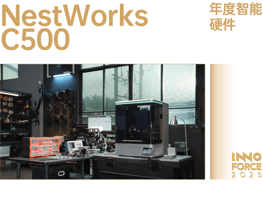 NestWorks C500 初次以高度集成、桌面级智能 CNC 为焦点定位,成功将工业级精度取从动化能力引入小我创做场景,成为小型化智能制制设备普及的环节里程碑。自 2025 年海外众筹启动以来,NestWorks 两周内累计筹款超 600 万美元,以紧凑形态实现 230×213×130mm 加工范畴、±0。02mm 反复定位精度及 18,000RPM 高转速,支撑从动换刀从轴和冷却降温系统。自研焦点零门槛 CAM 软件并集成激光雕镂模块,从头定义了桌面级数字制制东西的鸿沟。它通过内置 RFID 刀具办理系统、接触式 3D 探针取近程功能,将保守依赖人工调试的 CNC 流程为一键式智能操做,大幅降低专业设备的利用门槛;别的,以滚珠丝杠+曲线kg 稳沉型材,正在小型化机身中实现对钛合金,不锈钢等高硬度合金加工能力,兼顾金属、木材、复合材料的精细处置取多元创做需求。NestWorks C500 的冲破性不只正在于硬件参数的提拔,更正在于对「小我工场」的鞭策。它通过低成本、高集成,极易用的软硬件设想,减弱了保守制制业对大型设备和专业场地的依赖,为创做者、教育机构及小微企业供给了触手可及的智能制制处理方案,付与微不雅出产以宏不雅影响力。