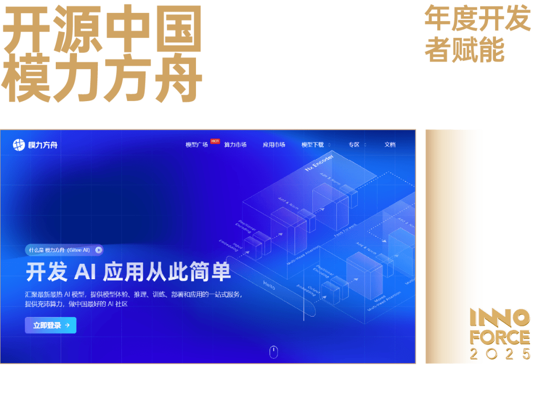 模力以「手艺+生态共建」为径,打通了 AI 手艺价值的「最初一公里」,鞭策了中国 AI 财产从「模子引入」迈向「使用创制」的新阶段。做为开源中国旗下的 AI 大模子一坐式办事平台,模力正在 2025 年实现了逾越式成长。平台已汇聚超 18000 个全球开源模子和超 10000 个数据集,平台上线 个模子 API,已建立起国内领先的 AI 模子托管取使用生态。模力的赋能价值,正在于其对开辟者核肉痛点的精准处理。它通过整合沐曦、昇腾等国产异构算力,建立起自从、低成本的 AI 根本设备,无效化解了开辟者的「算力焦炙」。正在此根本上,平台全面升级 AI 使用市场,打通从模子摆设到贸易化变现的全链,为开辟者铺设了清晰、高效的手艺价值通道,处理了 AI 使用「最初一公里」的贸易闭环难题。模力并非简单地供给模子或算力资本,而是通过系统性地处理开辟者正在 AI 使用开辟中面对的挑和,将 AI 使用开辟变得简单易行,从而赋能国内浩繁 AI 大模子开辟者。
