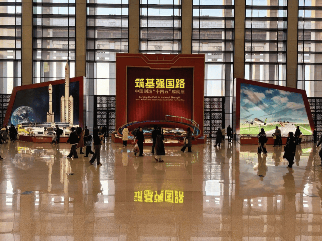 1月8日的中国国度博物馆人流如织,“建基强国——中国制制‘十四五’成绩展”正正在这里展出。展览上300余件展品全景呈现了“十四五”期间中国制制业的标记性取硬核实力。很多不雅众驻脚细看,人群中不只传来各处所言,还有外语交换声。
