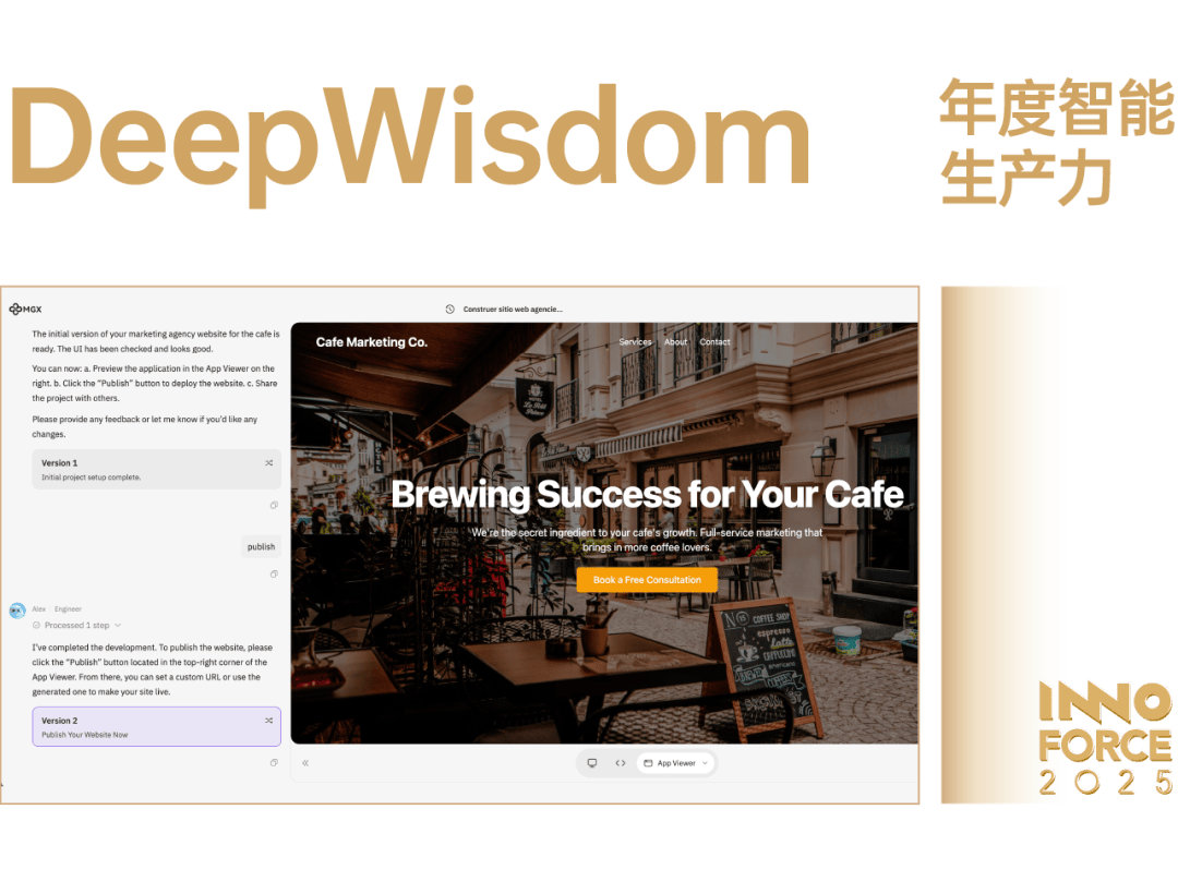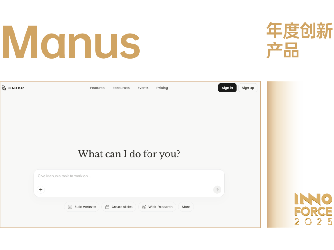 Manus 团队快速打制出了可用性颇高的通用 AI Agent,从本年 3 月上线起头,持续鞭策通用 AI Agent 的现实落地,以不变、务实的产物进展,为行业带来了全新的参考标的目的。脱胎于 Monica。ai 团队,Manus 让用户可以或许通过天然言语驱动 AI 完成相对复杂的使命,降低了利用门槛,也为行业摸索供给了新的视角。正在交互取建立方面,Manus 创制性地将诸如使命拆解、东西挪用等底层逻辑,以更曲不雅的体例为用户能理解和操做的前端操做界面,使建立和调整 AI Agent 的过程更易上手、切近现实工做场景。正在施行取协做上,Manus 让 AI 可以或许更好地舆解度指令,并正在需要时自从挪用浏览器、文件系统等东西,协帮用户完成使命。这种强大的「自从施行闭环」能力使 Manus 不限于常规的 AI 机械人进行简单问答,而是实正成为了可以或许贯穿工做流、处理现实问题的出产力伙伴。Manus 的价值不只表现正在产物能力本身,更表现正在其对「Agent as a Service」标的目的的摸索,并了这一全新范式。通过持续关心实正在需求、不竭改良产物体验,Manus 正正在让 AI 更天然地融入小我和企业的日常工做中,逐渐展示出一种新的出产力模式。