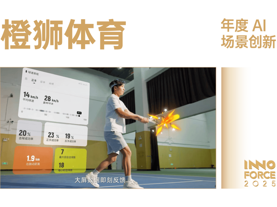 「橙狮慧影 Smartshot」是阿里巴巴集团旗下的橙狮体育(原阿里体育)历经 14 个月研发,由阿里供给算力支持,由自研 AI 视觉算法进行焦点支持的球场处理方案。该系统通过摆设正在网球场中的各类硬件,能够及时捕获活动者的动做、球速、落点等焦点数据,并快速完成判罚、数据阐发,赛后还能从动生成个性化活动集锦。它将原先国际顶尖赛事公用的「鹰眼」手艺,颠末优化裁剪,以更经济适用的体例带入通俗体育场景。Smartshot 表现了橙狮体育对「AI+体育」的深刻理解:AI 手艺的最大价值正在于取实正在体育场景连系,为通俗活动者供给合适其消费程度的增值办事。AI 不只能提拔效率,更主要的是供给体验价值。目前,「橙狮慧影 Smartshot」已正在全国跨越 150 片场地完成摆设,成功将专业级体验带入日常活动,使日常活动愈加专业化,充实注释了橙狮体育「让活动简单」的公司。