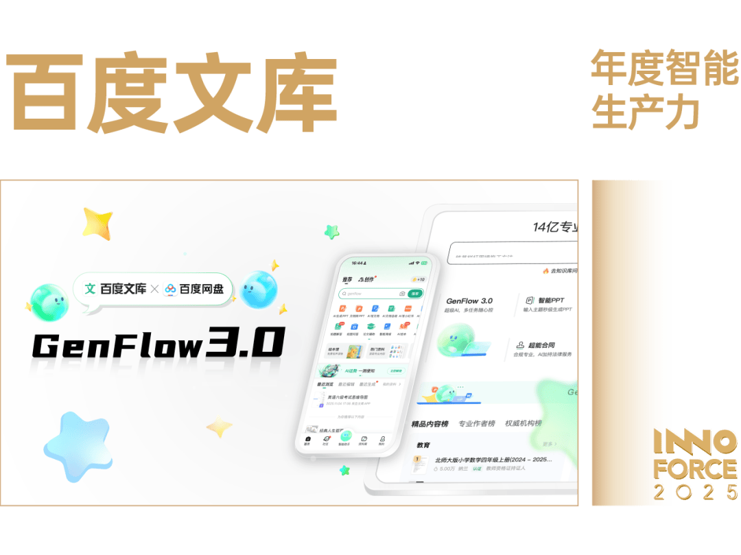 做为全端通用智能体,GenFlow3。0 活跃用户已超 2000 万,具有更强大的通用化多模态能力,完全实现全模态内容的输入、处置和输出。GenFlow3。0 能够安排 100 个专家 Agent 构成的「AI 专家团」,正在 3 分钟并行完成 5+复杂使命,实现「分钟级交付、过程可干涉、回忆可逃溯」,打通公私域学问,抹平东西鸿沟,将 AI 变为「超等出产力」,帮力每小我成为超等个别。通过全新升级的回忆核心,GenFlow3。0 通过全局回忆能力,处理了 AI 的「目生感」,更懂用户的需乞降偏好。同时,GenFlow3。0 还能够自从挪用 Office Agent,文库自研「多模态融合编纂器」,供给内容创做到编纂的一坐式办事。上述成绩的实现,得益于其「公域+私域」生态劣势 :百度文库超 18 亿的专业内容取百度网盘海量的小我授权数据,形成了的学问图谱;同时,正在计谋上打破了「肌肉回忆」,文库沉构为「一坐式 AI 内容获取和创做平台」;其底层的 MoE(夹杂专家模子),以及沧舟 OS、GenFlow 等根本设备的建立,不只可以或许实现精细化安排,还以「平易近用级」成本支持了复杂的 AI 办事,让普惠公共成为可能。文库 GenFlow3。0 将 AI 实正改变为取人并肩协做、是智能出产力的最佳实践。