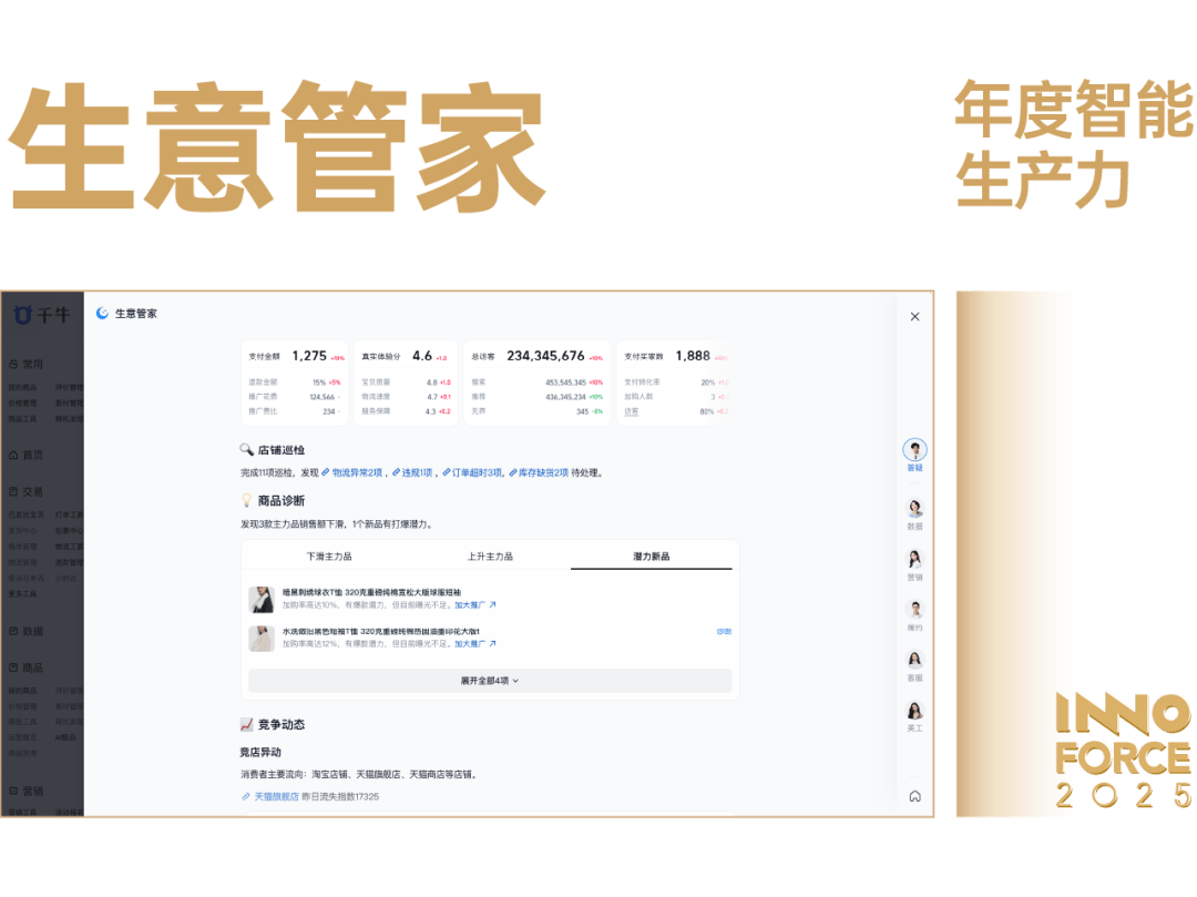 2025 年双 11,生意管家让「智能出产力」成为淘宝天猫超 500 万商家的日常,用 AI 沉塑电商运营。做为电商范畴商家 AI 使用的标杆处理方案,生意管家让 AI 从「辅帮东西」进化为商家的「运营伙伴」,至此 AI 电商不再是将来,而是超 500 万商家沉构增加的现实选项,是让生意更简单的「年度智能出产力」。