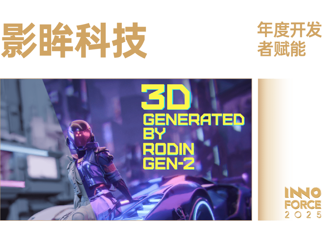 影眸科技的 Hyper3D。AI Rodin 让 3D 模子制做生成从「专业技术」变人可用的「开辟能力」。它以高保实、及时响应的 AI 生成引擎,显著降低了三维内容创做的手艺门槛,闪开发者、设想师甚至通俗用户都能用天然言语生成可间接用于工业、逛戏取数字人场景的高质量 3D 模子。影眸采用原生 3D 几何数据进行端到端锻炼,推出了全球首个原生 3D 生成大模子产物,将行业生成质量初次从「概念验证」推进至「出产可用」阈值。该手艺径现已成为支流范式。正在 2025 年,Rodin 的能力全面升级:其生成质量已可取保守建模管线媲美,支撑纹理、分件等输出。通过 API,Rodin 成为浩繁 3D 引擎、虚拟人平台、甚至机械人仿实系统的根本生成组件——让 AI 模子能间接「制制」可被法式挪用的虚拟物体。其「通过 Generative Exploded Dynamics 实现 3D 资产分件」的手艺 BANG,将保守的 3D 分件聚类使命为生成式使命,驱动 3D 生成模子进入后锻炼 (Post-Training) 阶段,正在连结泛化机能的同时,实现高精度资产分件。Rodin 的意义,正在于它让 3D 创做不再依赖少数专家,而成为所有开辟者的根本能力。Rodin 正正在用东西的体例,从头定义开辟者的创制力鸿沟。