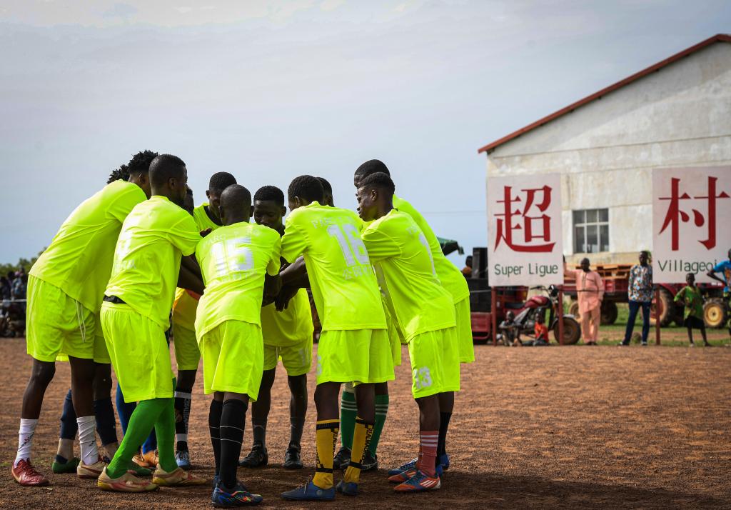 2024年5月25日,正在贝宁帕拉库市斑斓城村的中国援贝宁棉花手艺援帮项目旁,本地首届“村超”脚球联赛决赛举行。记者 李亚辉 摄。